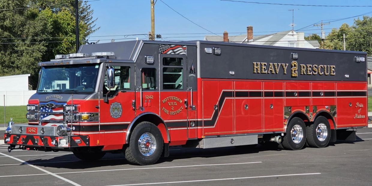 1242 is a brand new, state of the art, multi-purpose heavy rescue vehicle. It is the first apparatus to respond to motor vehicle accidents, rope rescues, carbon monoxide emergencies, and haz-mat calls. 1242 is the third due apparatus to any in-district structural response. The cab is equipped with seven SCBA seats (one in the front, six in the rear).